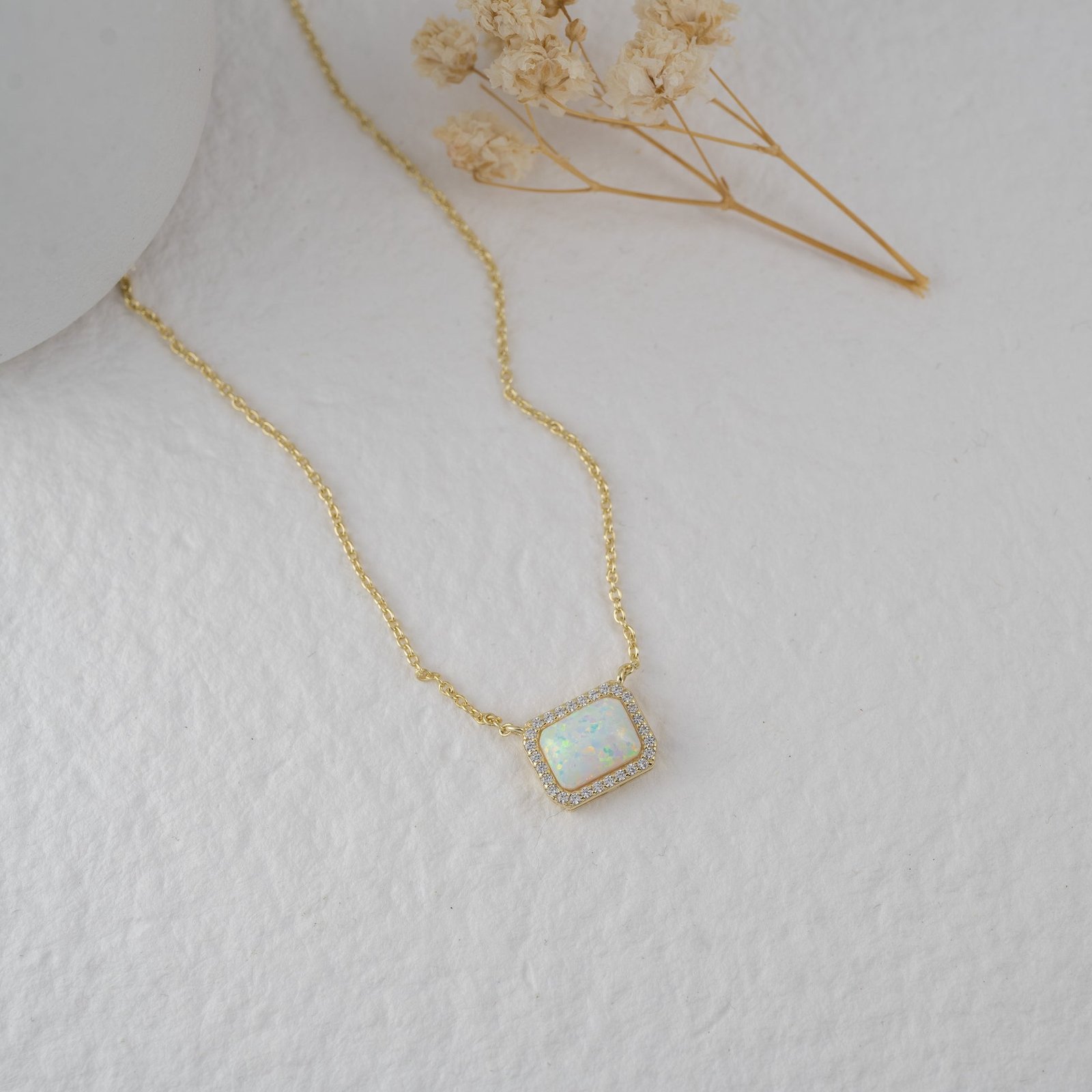 With its modern and chic design, the 925 Silver Opal Pendant Necklace is an ideal gift or a perfect treat for yourself. The opal’s vibrant hues add a touch of elegance, while the 14K gold plating elevates the entire piece, making it perfect for all occasions.