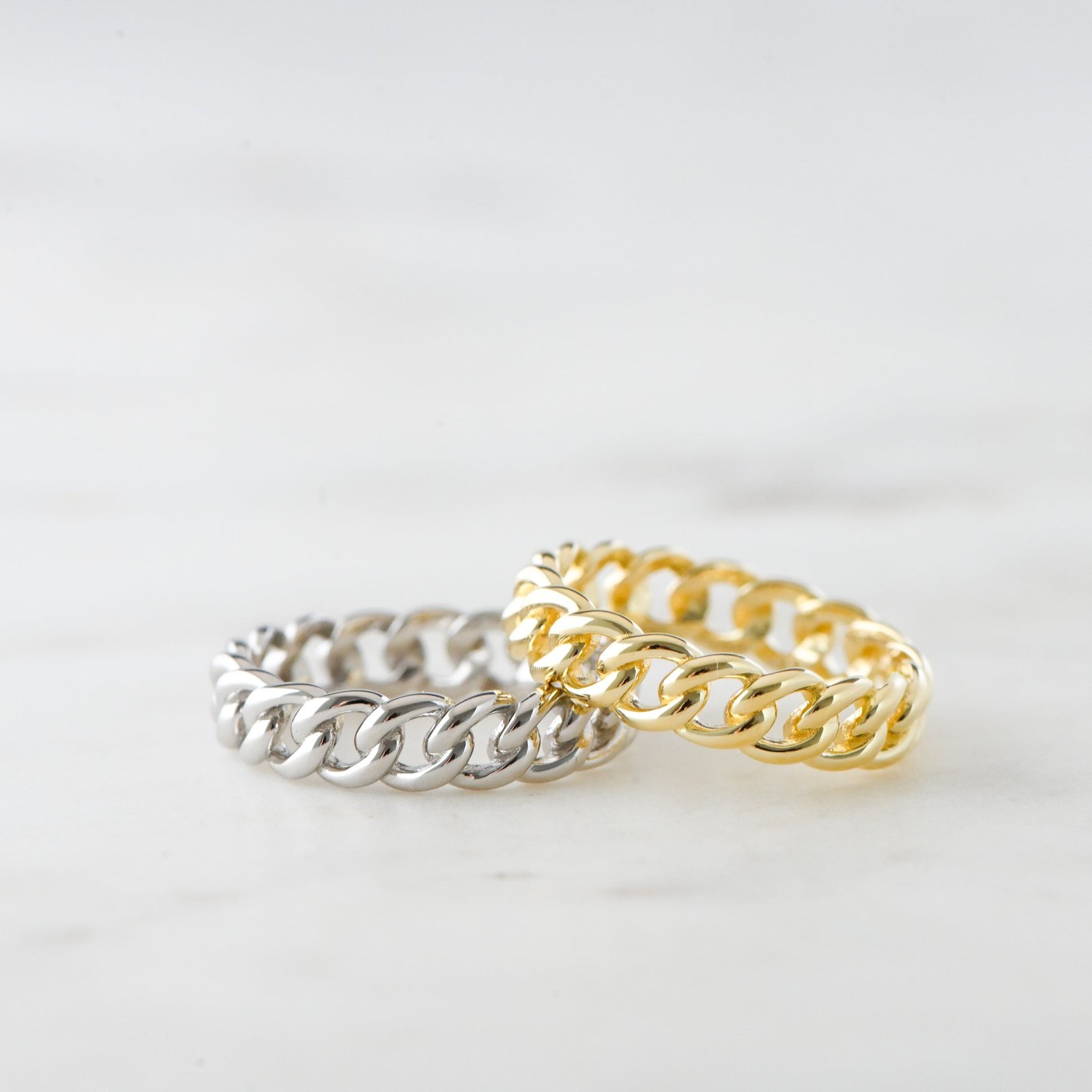Crafted from high-quality 925 sterling silver and finished with a thick, durable layer of 14k gold plating, this ring is built to last — retaining its shine and structure through everyday wear. The solid chain links give it a contemporary look that’s both stylish and timeless, ideal for those who love minimal jewelry with an edge.