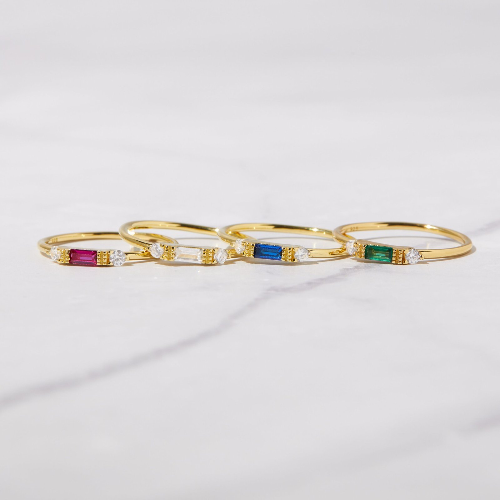 The 925 Silver Ruby Baguette Ring is the perfect addition to any jewelry collection, offering a chic, minimalist look with a touch of elegance. Crafted from 925 Sterling Silver and plated with a thick layer of 14K Gold or Rose Gold, this ring is not only stylish but built to last. Its simple yet dainty design makes it perfect for stacking or wearing alone for a subtle statement.