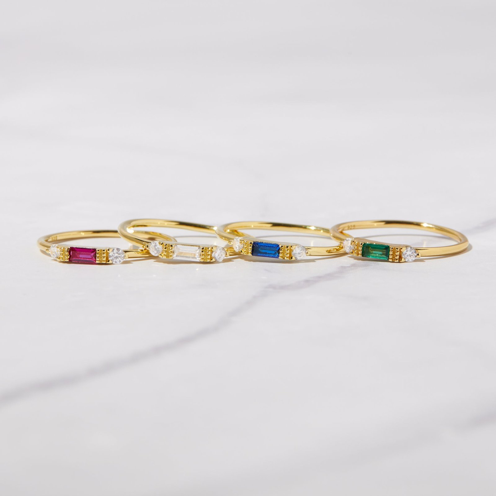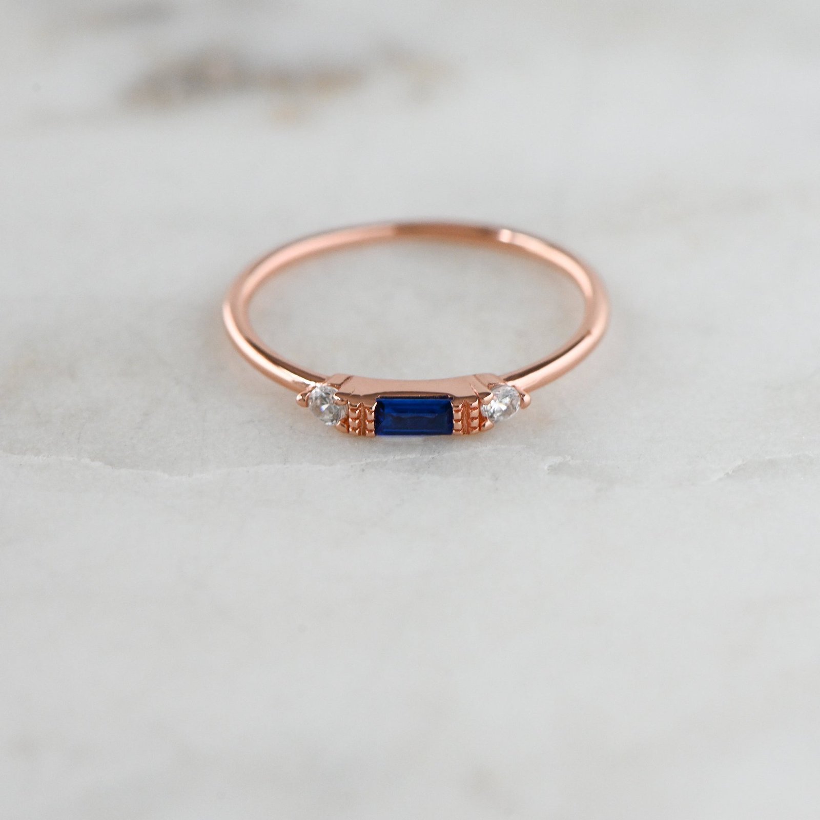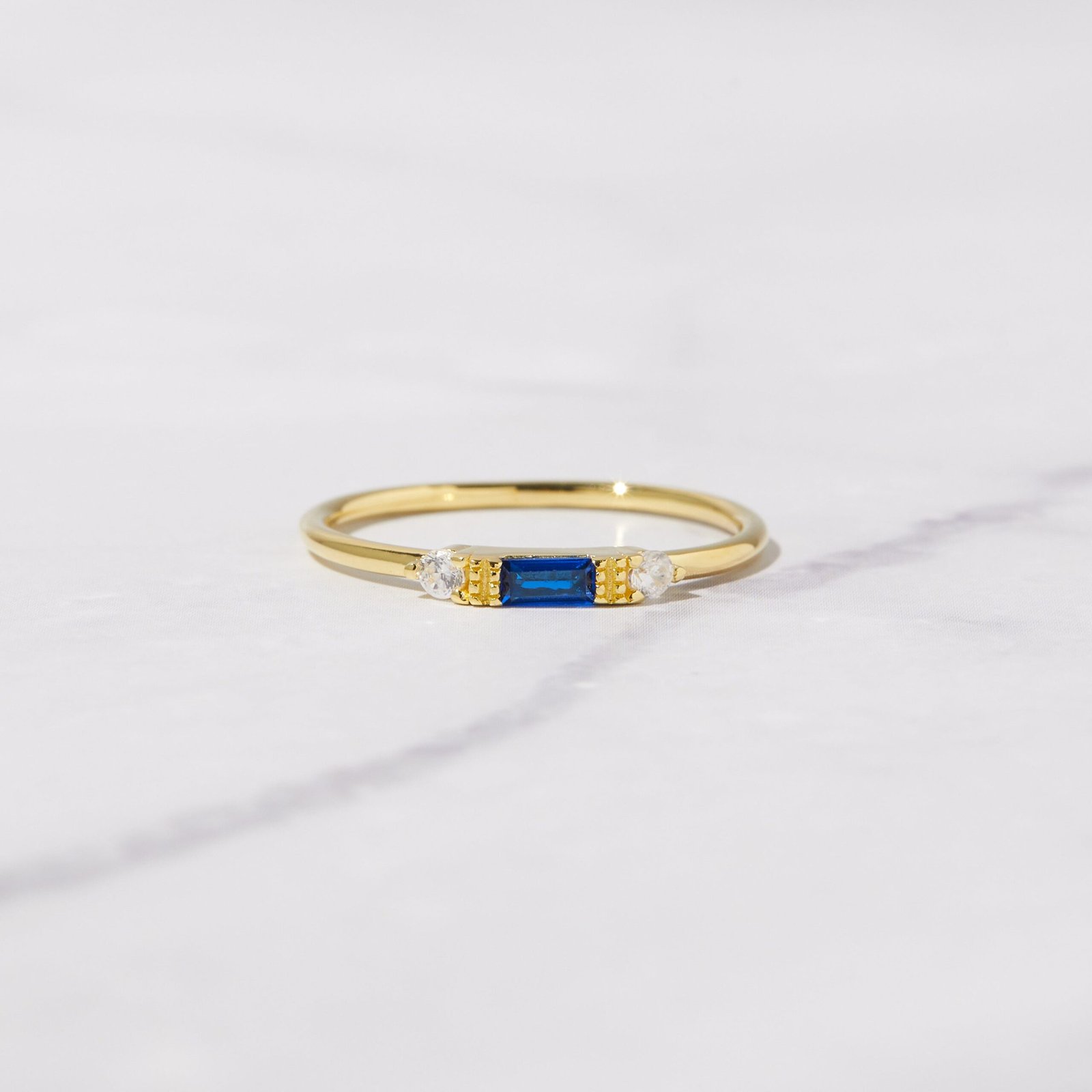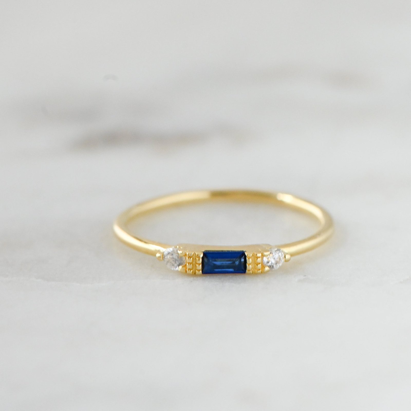 925 Silver Sapphire Baguette Ring, 14K Gold Plating, Nickel-Free & Hypoallergenic, perfect for stacking or minimalist look.