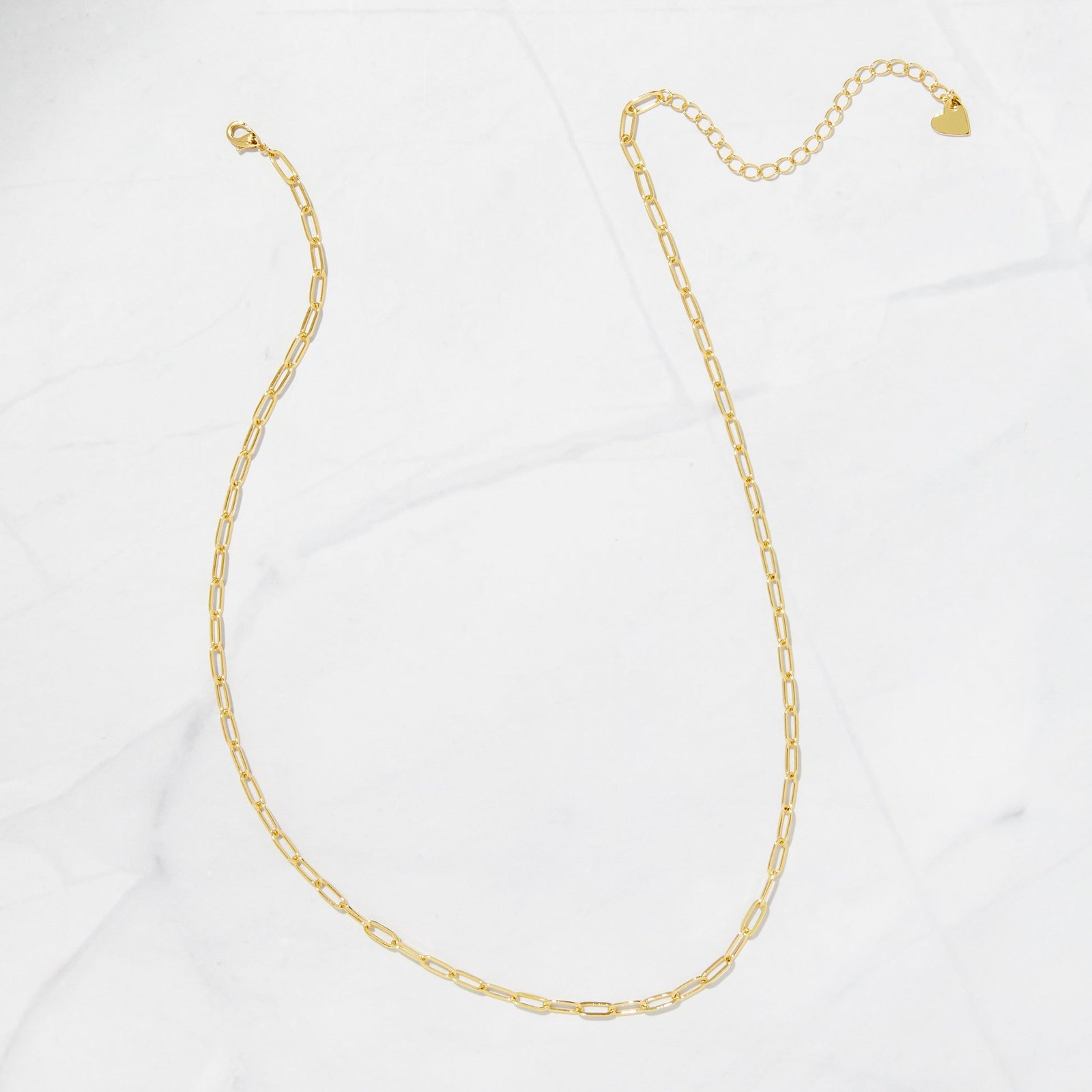 Trendy 925 Silver Small Paperclip Necklace with 14K gold plating, nickel-free & hypoallergenic, perfect for layering or wearing solo, 16″ + 2.5″ extension chain.