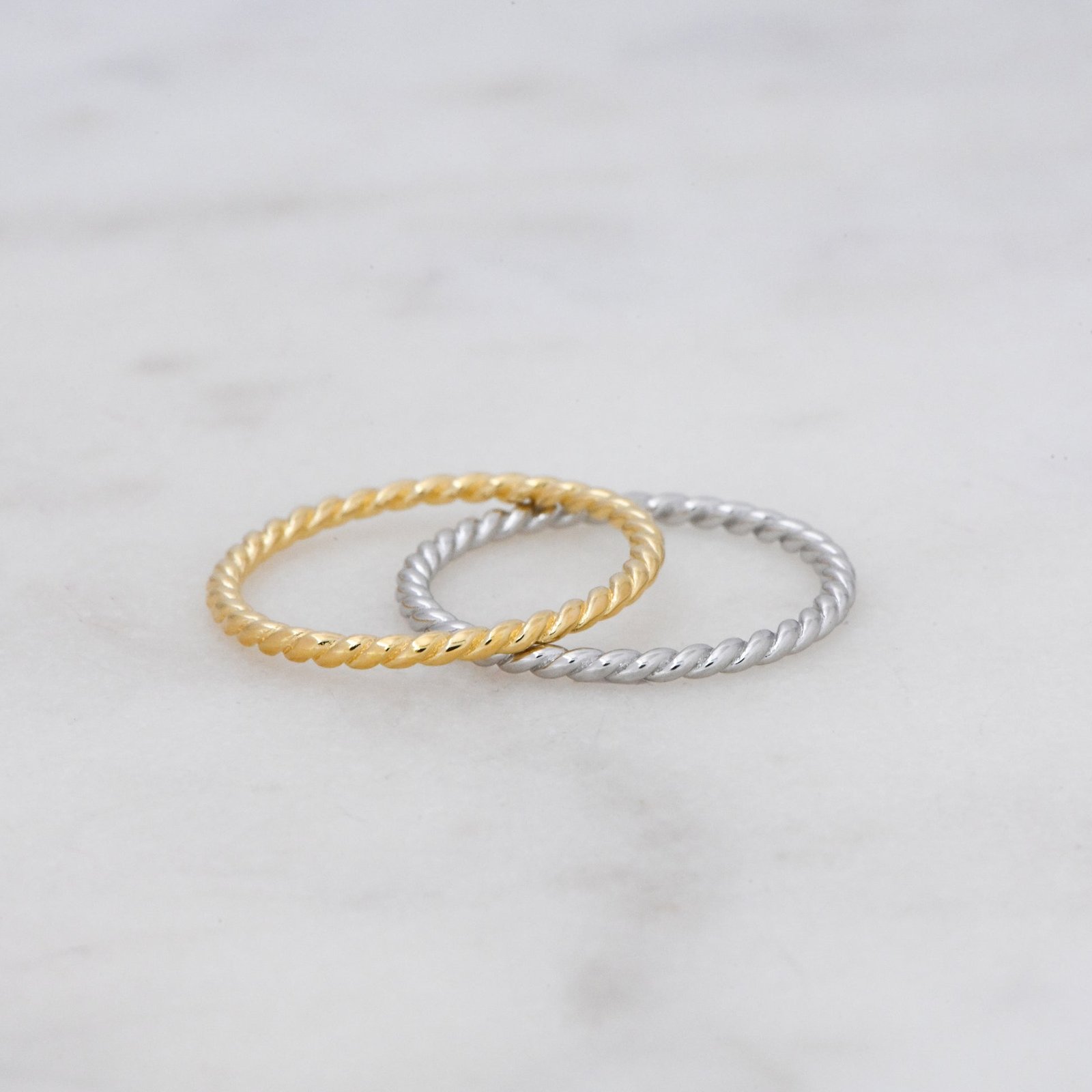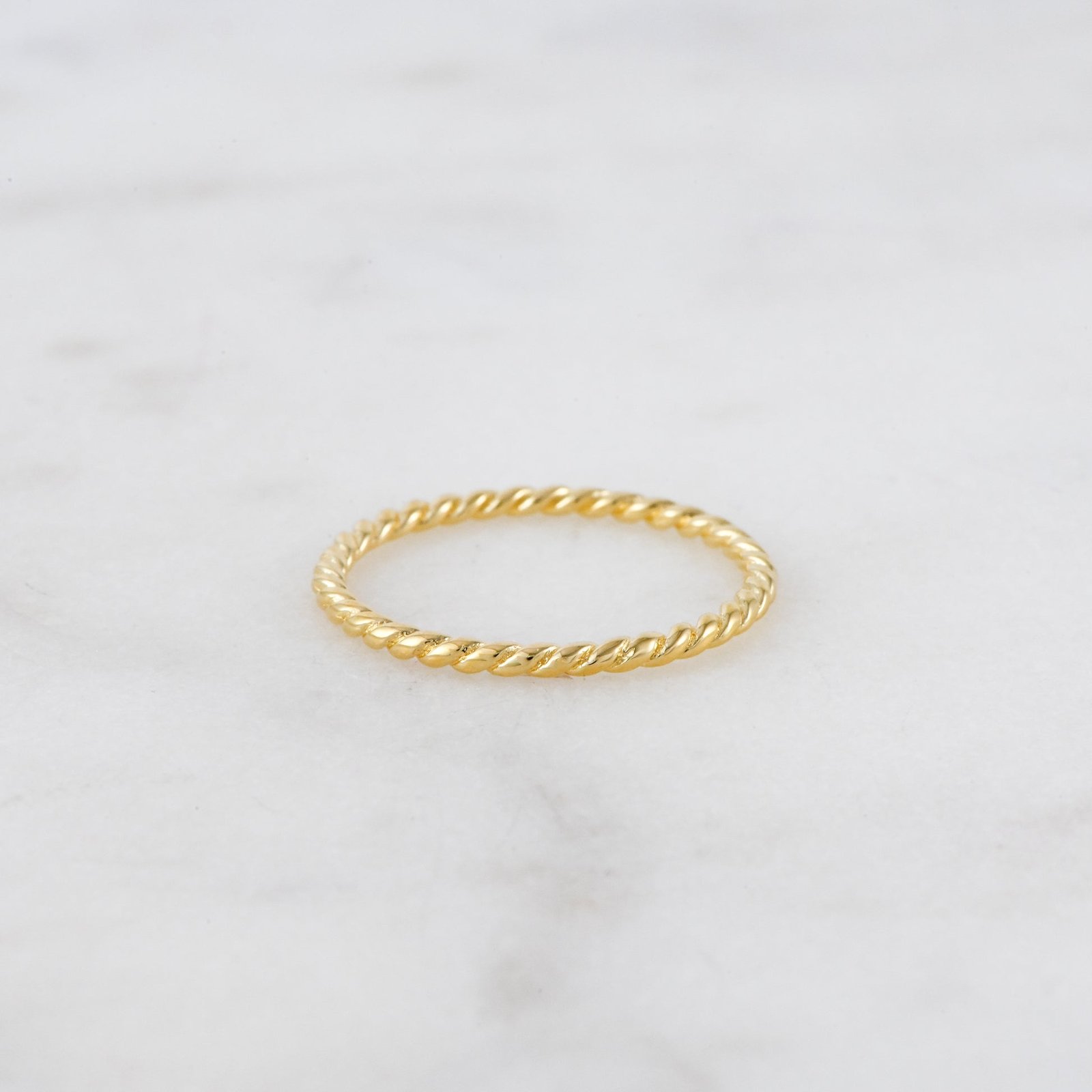 925 silver spiral stacking ring with 1.3mm width and thick 14k gold plating. Minimalist, hypoallergenic, and perfect for everyday layering or solo wear.
