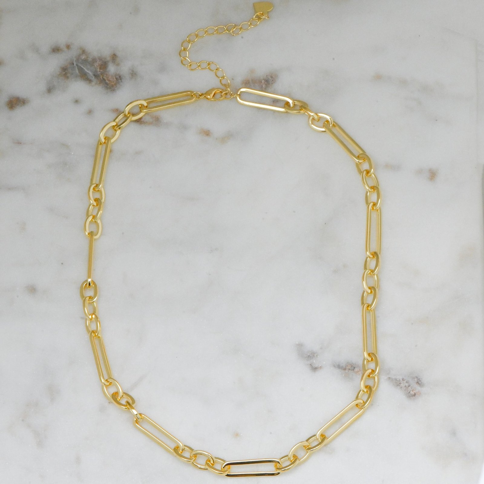 Chunky 6mm chain link necklace with 14k gold plating. Bold, adjustable, nickel-free, and perfect for dressing up or down.