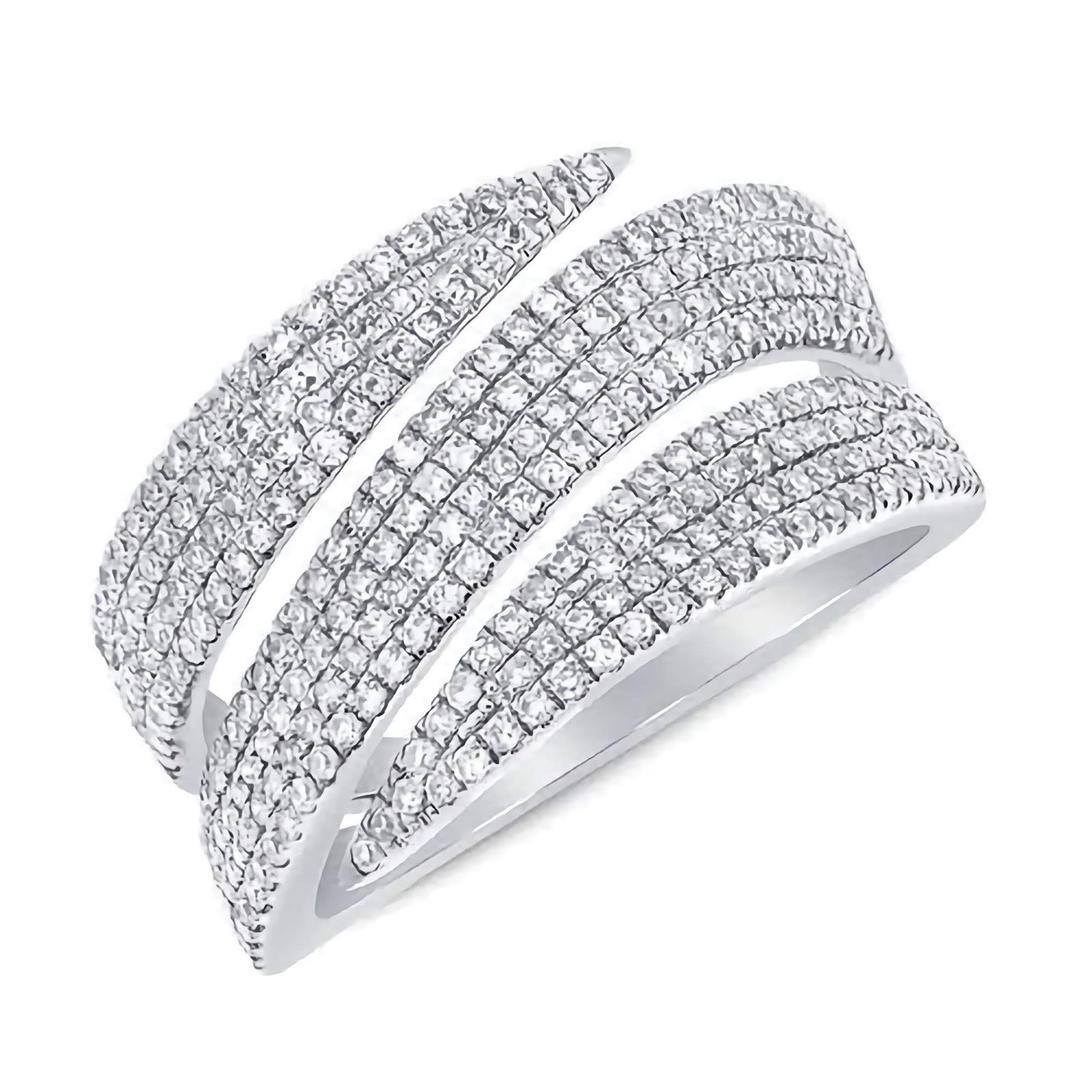 925 Silver Triple Wavy Diamond Cigar Ring