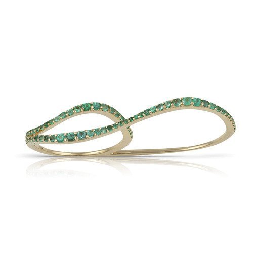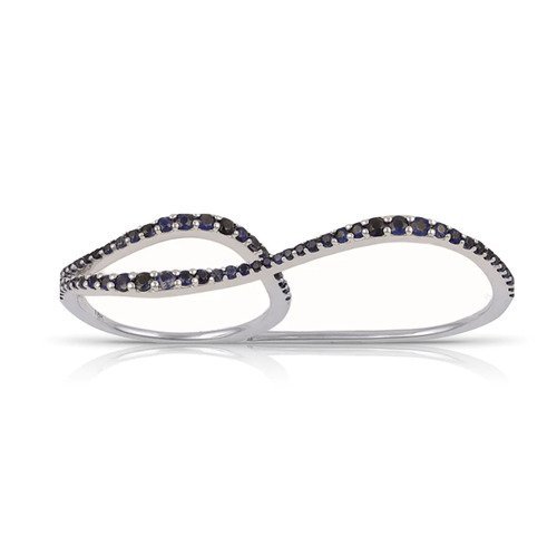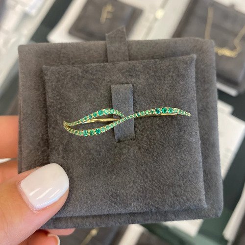 The sleek, wavy silhouette gracefully spans two fingers for a statement look that’s both fashion-forward and elegant. Adorned with highest-grade Cubic Zirconia gemstones, the ring sparkles with vibrant brilliance—each stone expertly placed to create a fluid, radiant wave of color and light.