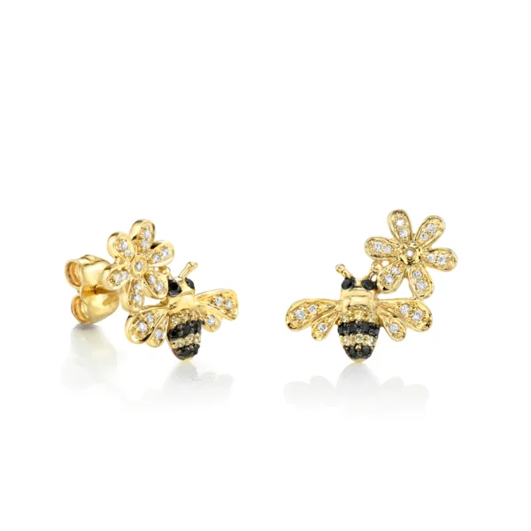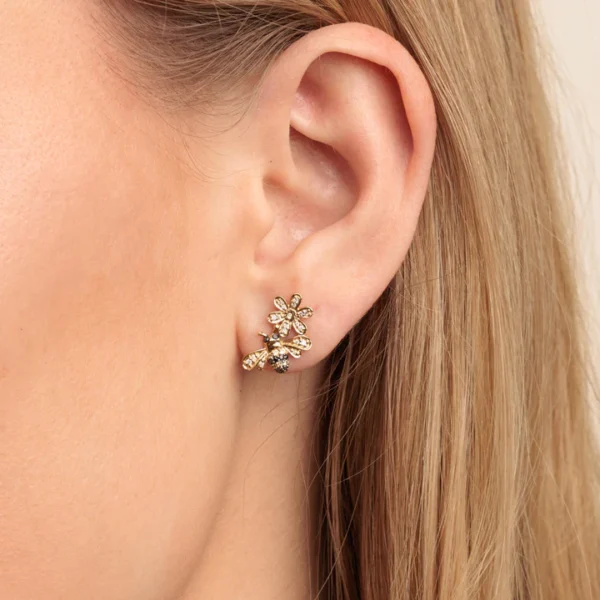 925 Silver Diamond Bee & Daisy Stud
