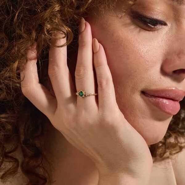 925 Silver Square Emerald Engagement Ring