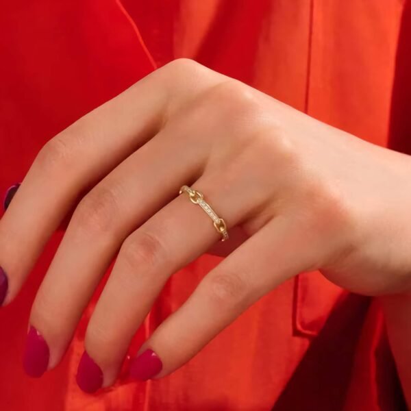 925 Silver Link Band Pave Diamond Ring