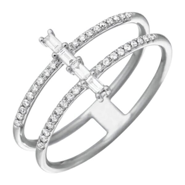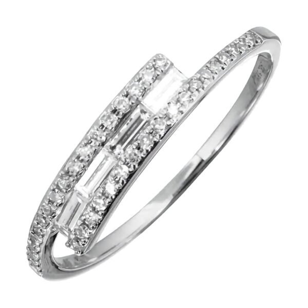 925 Silver Twist Baguette and Round Diamond Ring